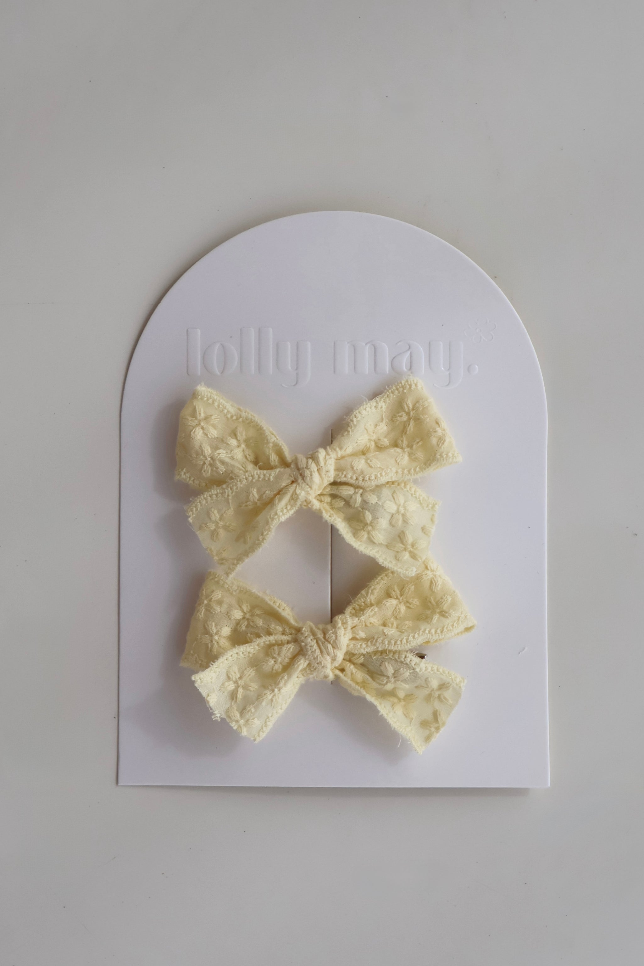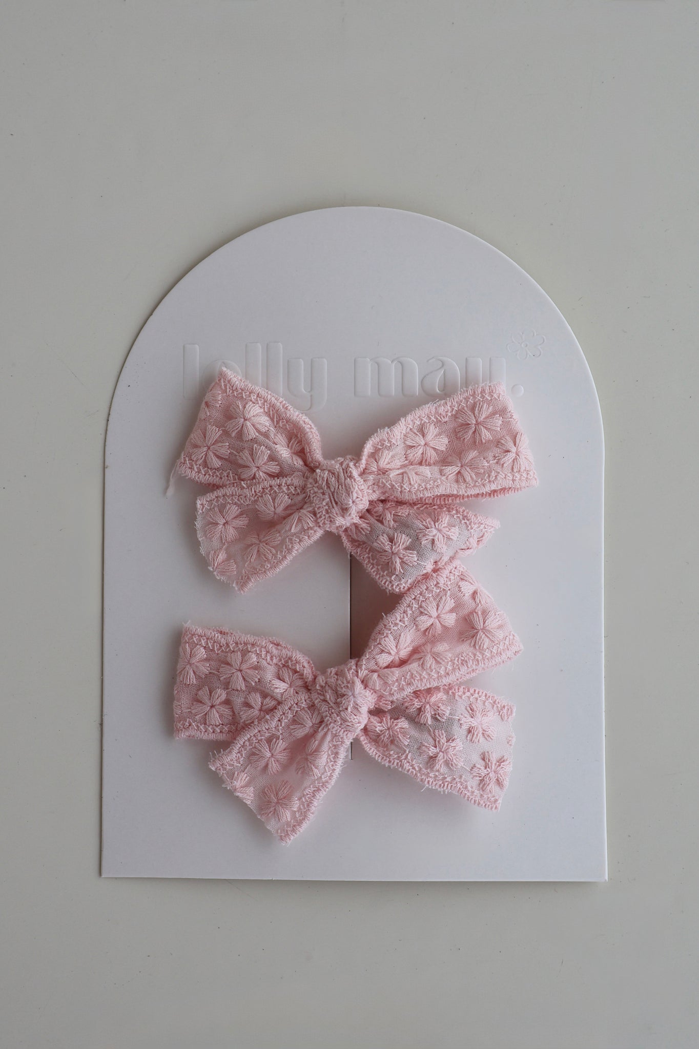 Made from the softest delicate lace, these beautiful bows come in the most dreamy colour ways to mix, match and collect. Lightweight and gentle, they’re perfect for little heads and designed to sit comfortably all day long.