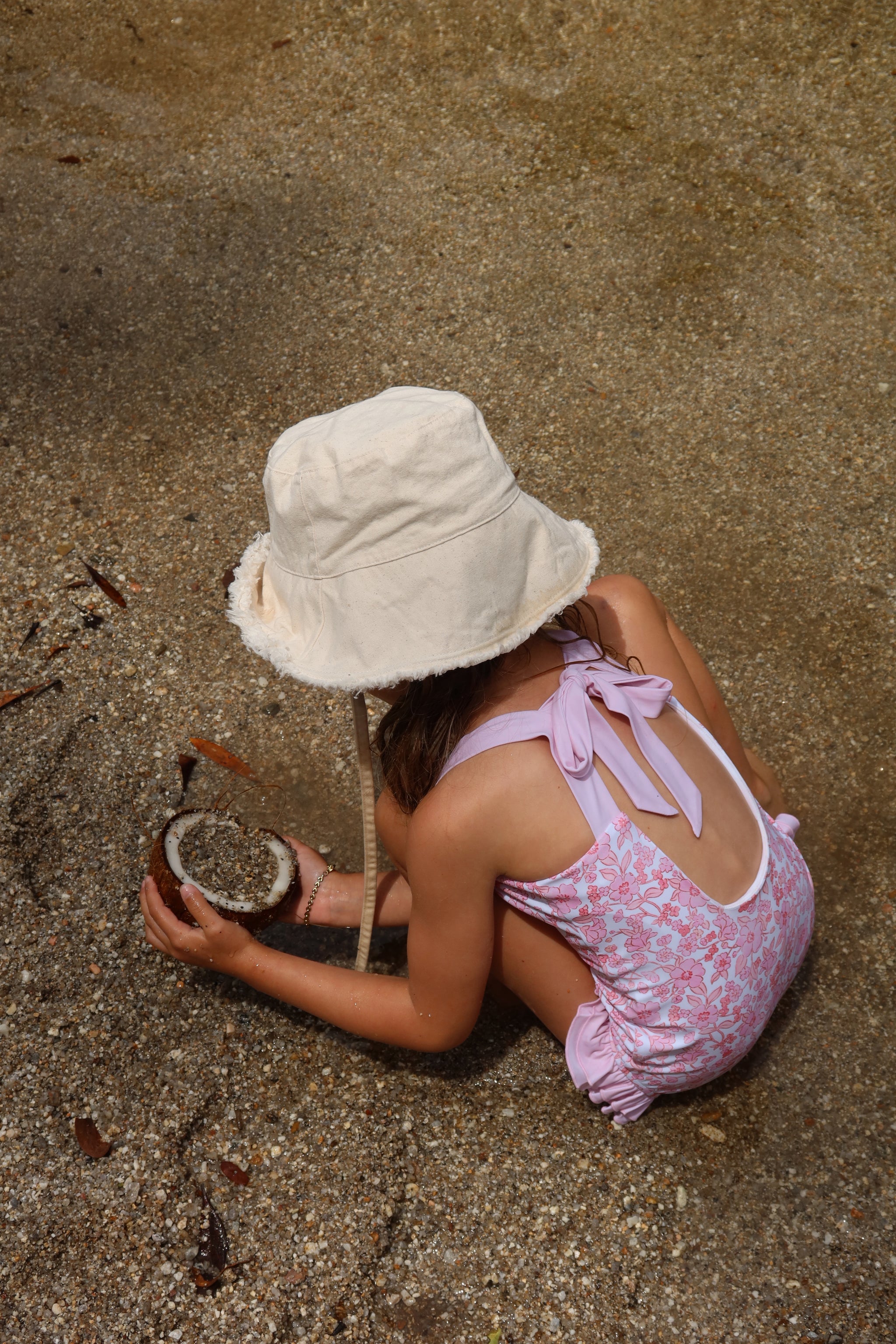 Our beautiful fairy floss print you all know and love in our brand new swim is sure to have heads turning wherever you go, with her her pink tie up open back and her cute little frills over the legs. The soft pink tie-up back adds a touch of elegance while allowing for an adjustable fit, ensuring comfort and style all day long.