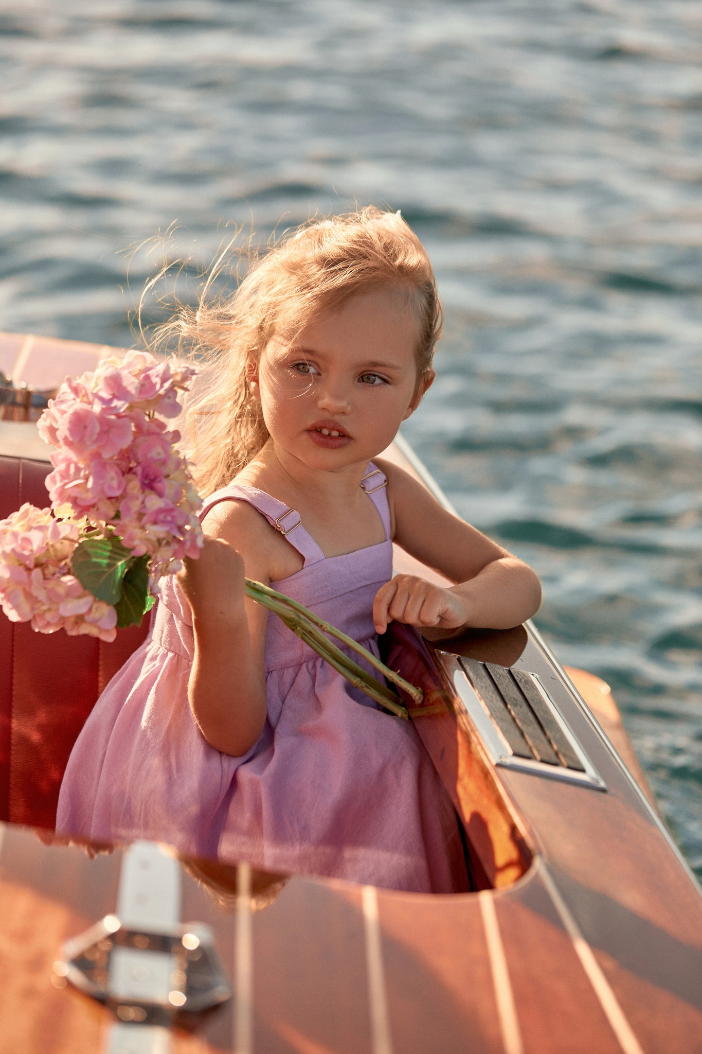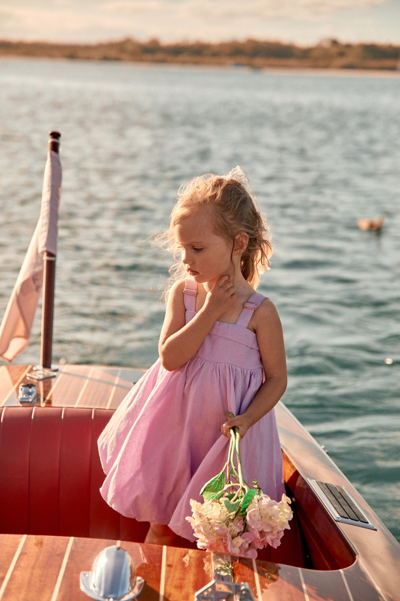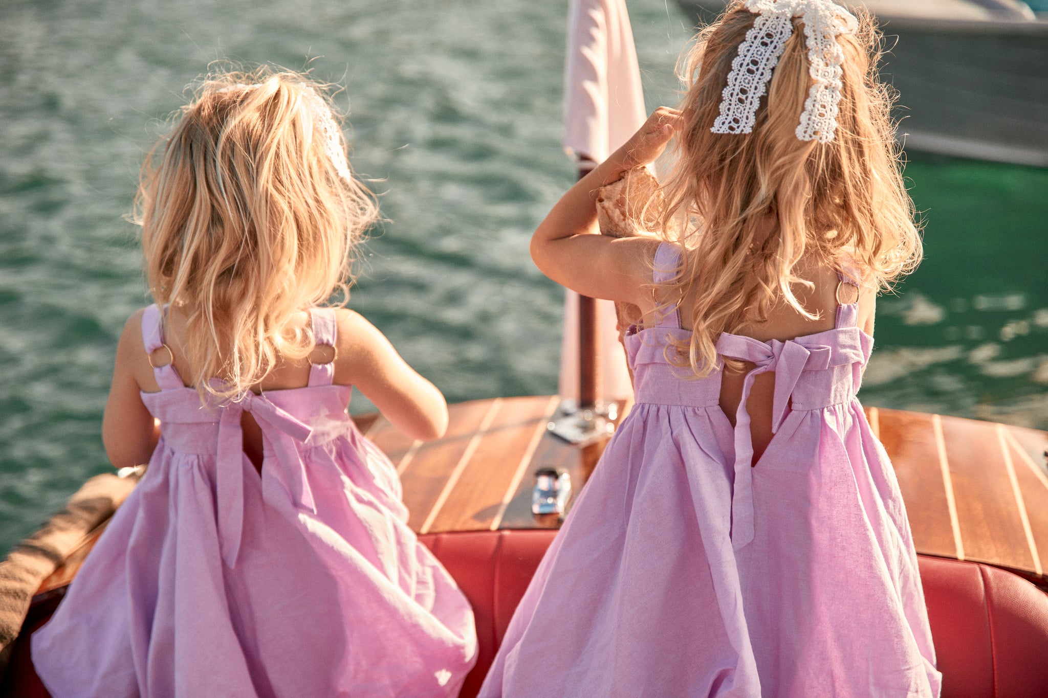 Our gorgeous lilac baby doll dress is made from 100% soft linen in a beautiful baby pink hue. Showcasing a mini bubble skirt, fixed waist and cut out detailing at the back with a gorgeous tie up bow. Its both dainty and elegant in its design. This dress is perfect for every occasion and features high quality gold coloured hardware which makes the straps adjustable to compliment longevity of wear.