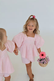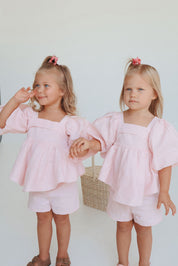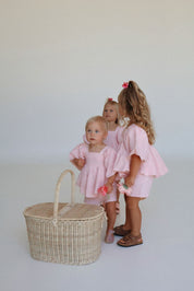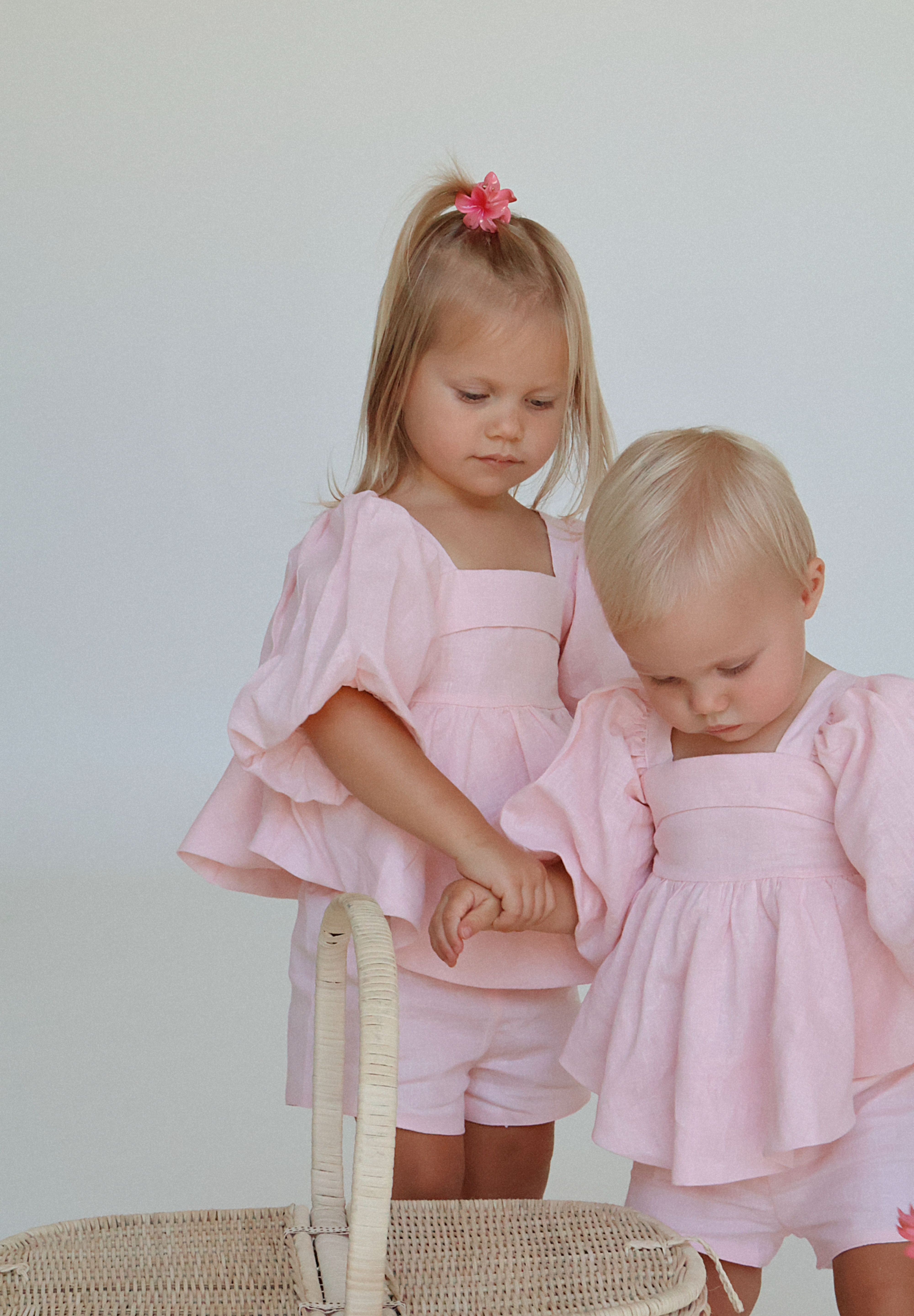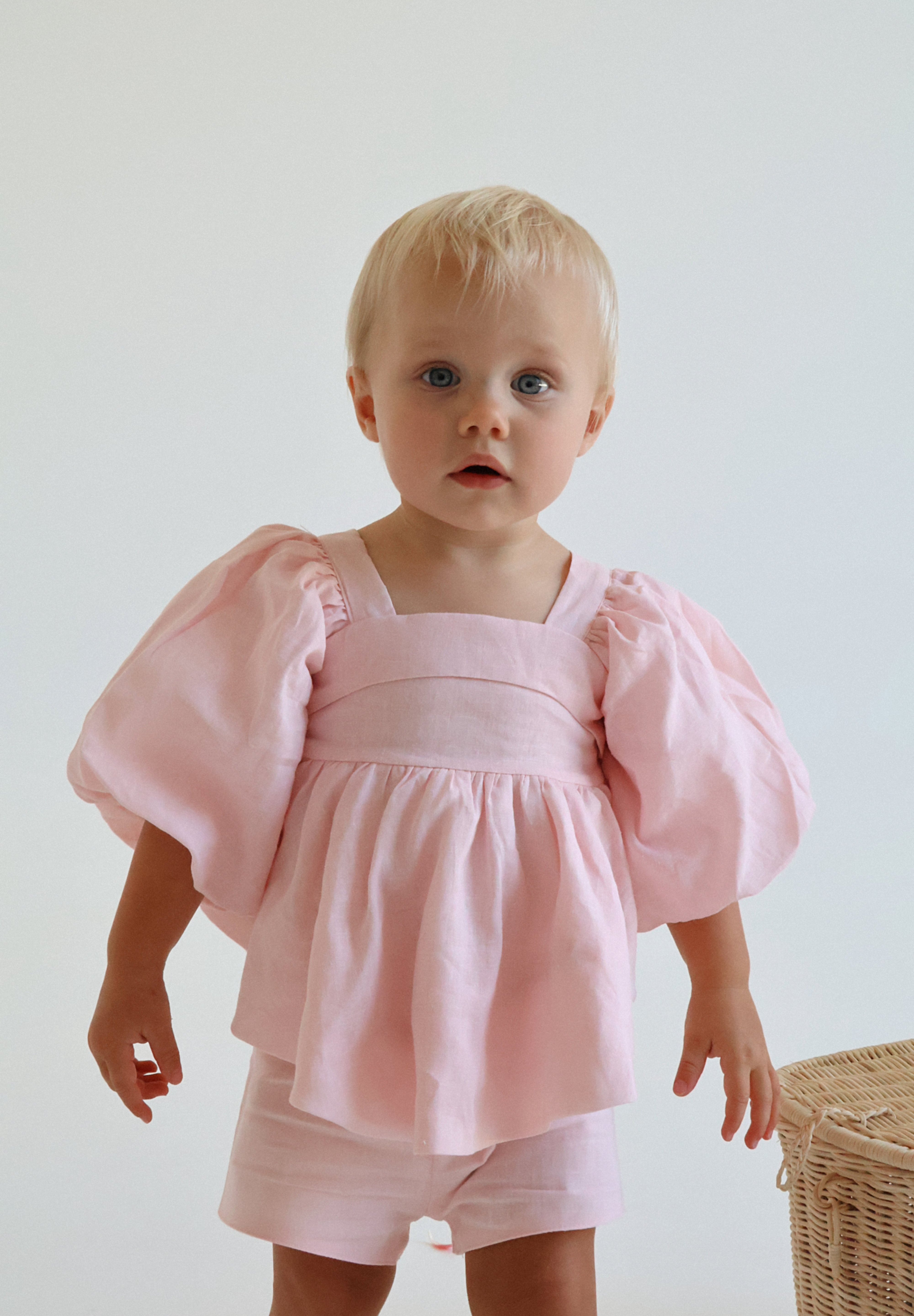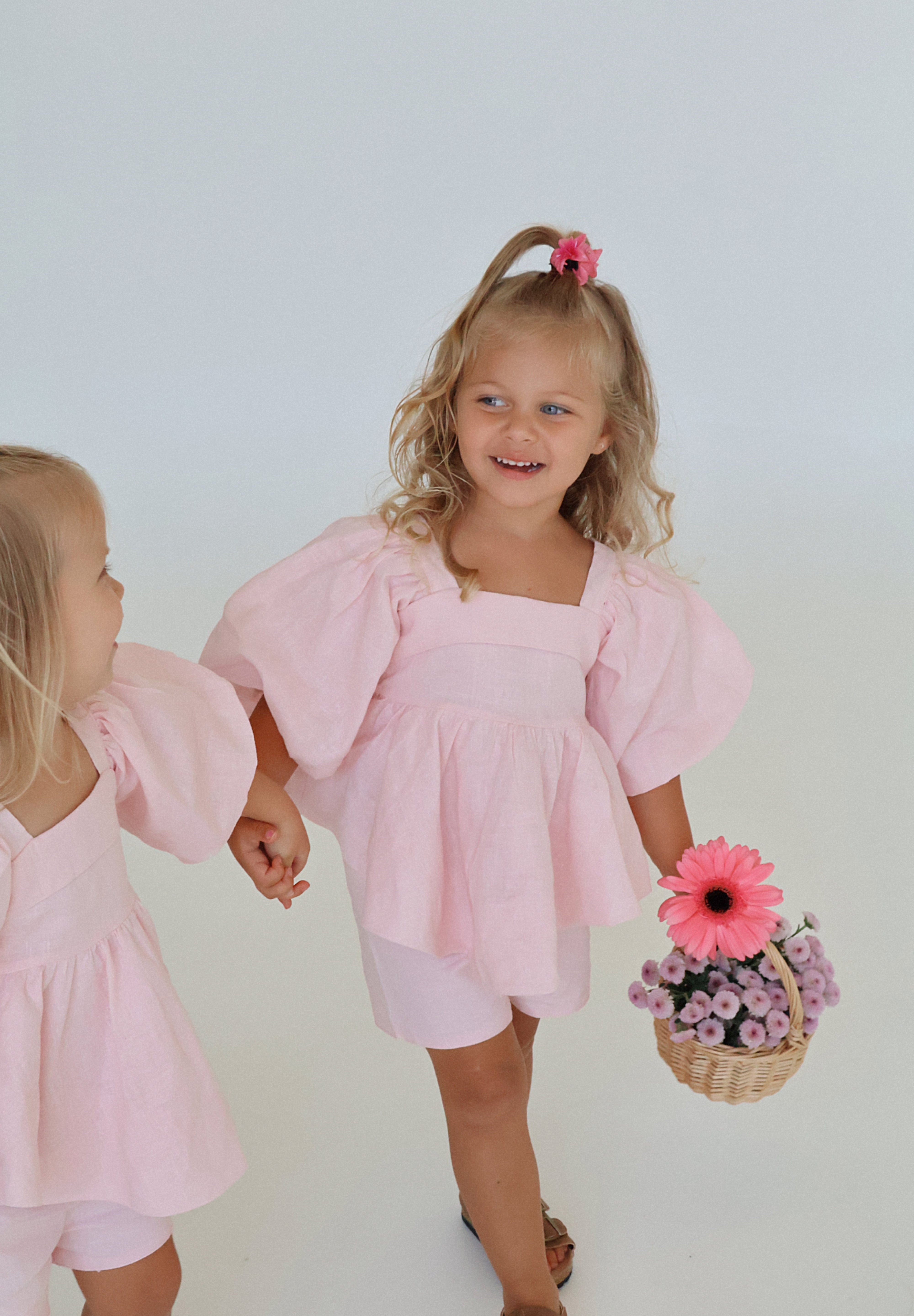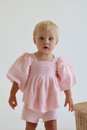 Our gorgeous bubble sets are made from a pure 100% soft linen with rayon lining. This is a two piece set and comes with the most gorgeous top. It's sure to be absolutely show stopping with her puff sleeves, bubble hemline and gorgeous bow tie at the back for easy dressing. The shorts compliment the outfit so well with a elasticated waist and functional adjustable waistband.