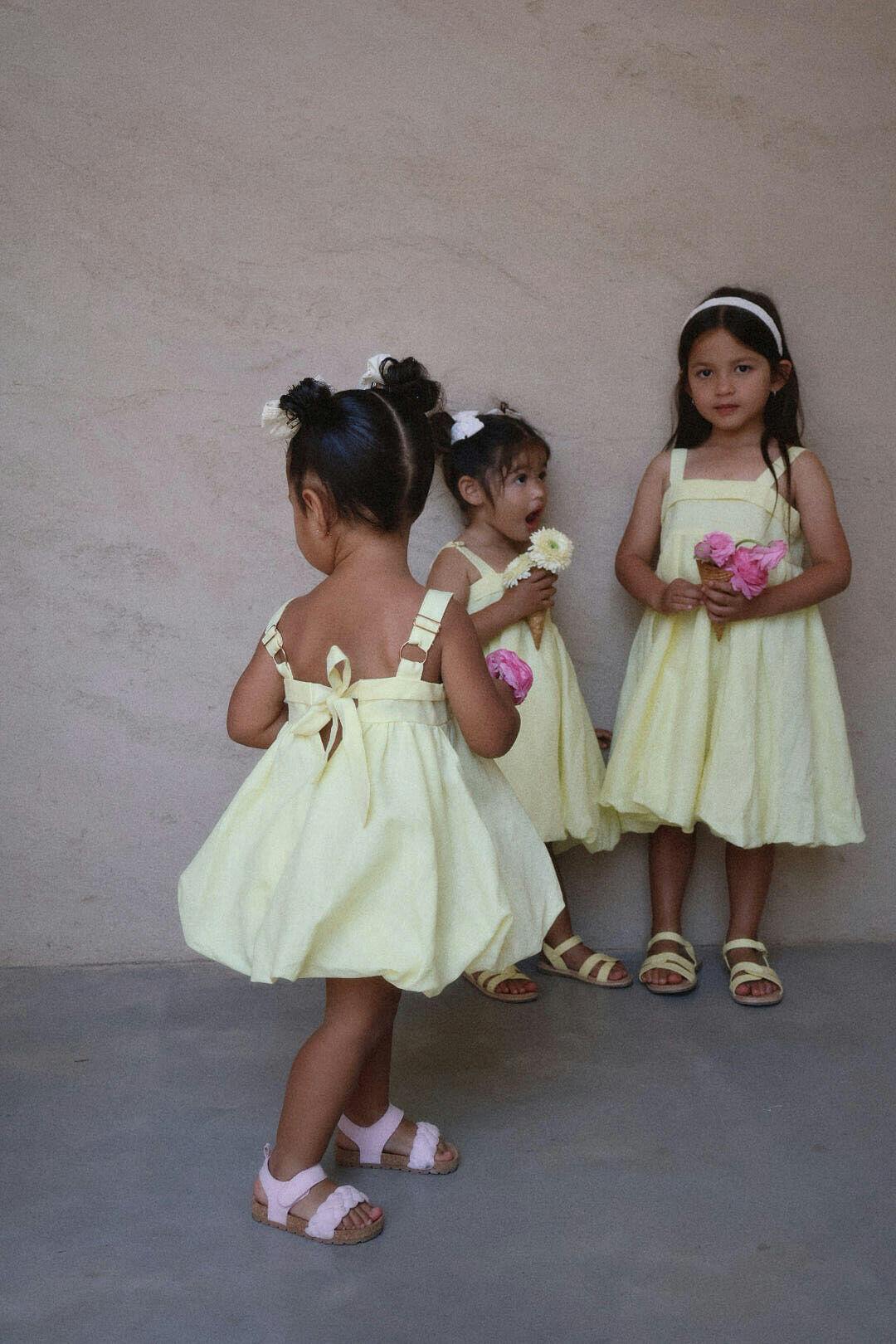 Our gorgeous lemon baby doll dress is made from 100% soft linen in a beautiful pastel lemon colour. Showcasing a mini bubble skirt, fixed waist and cut out detailing at the back with a gorgeous tie up bow. Its both dainty and elegant in its design. This dress is perfect for every occasion and features high quality gold coloured hardware which makes the straps adjustable to compliment longevity of wear.