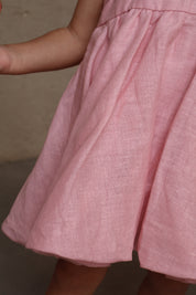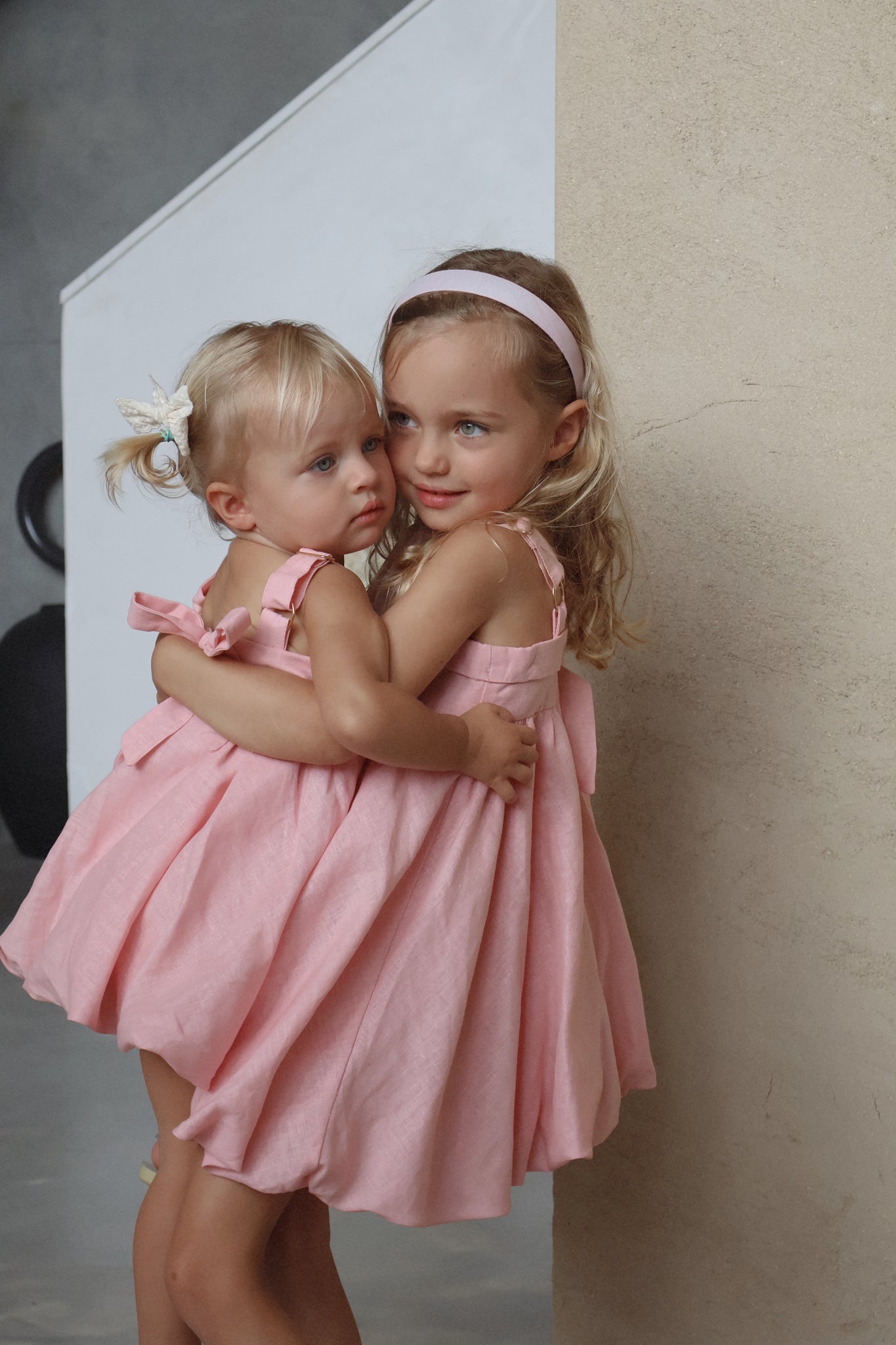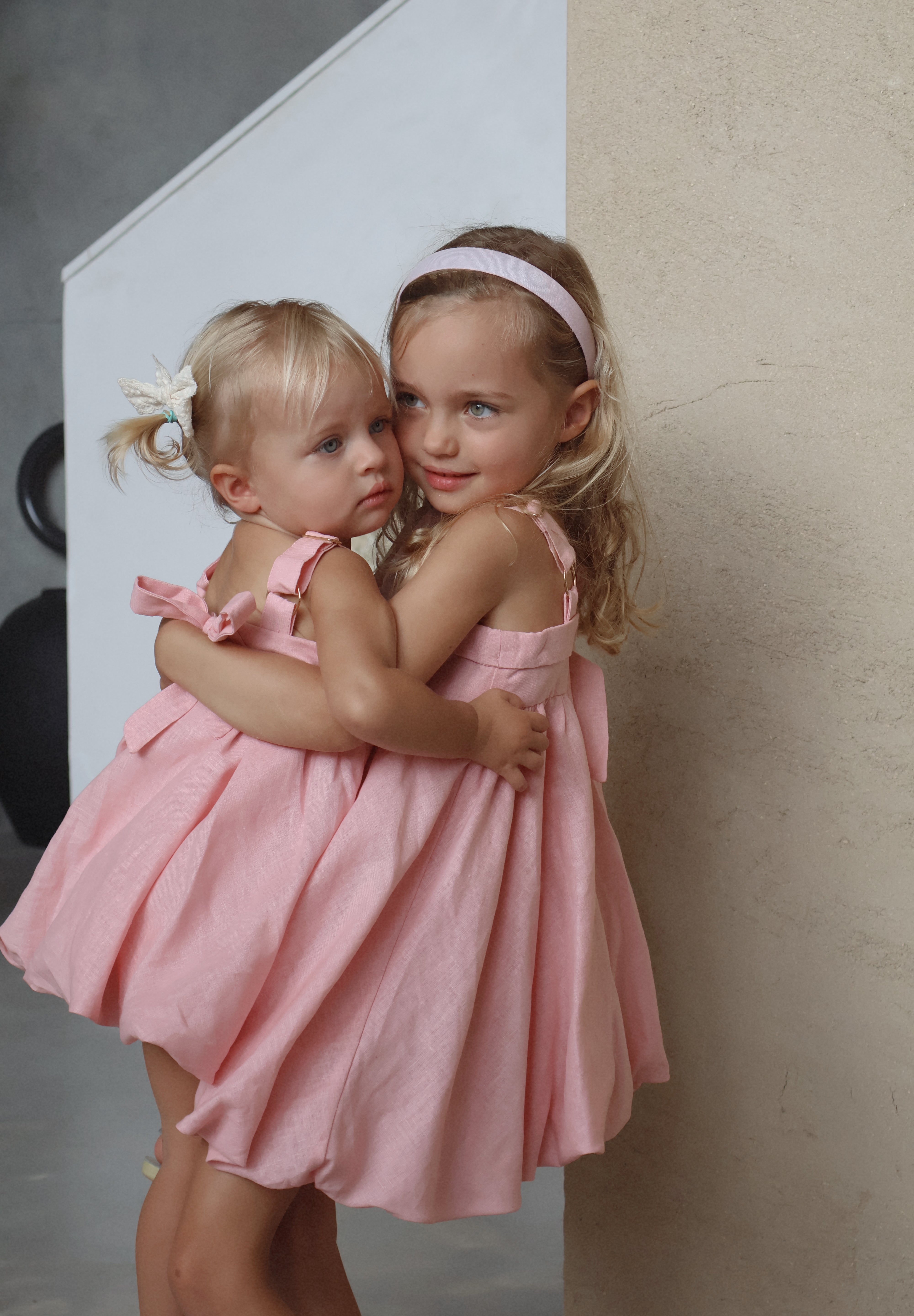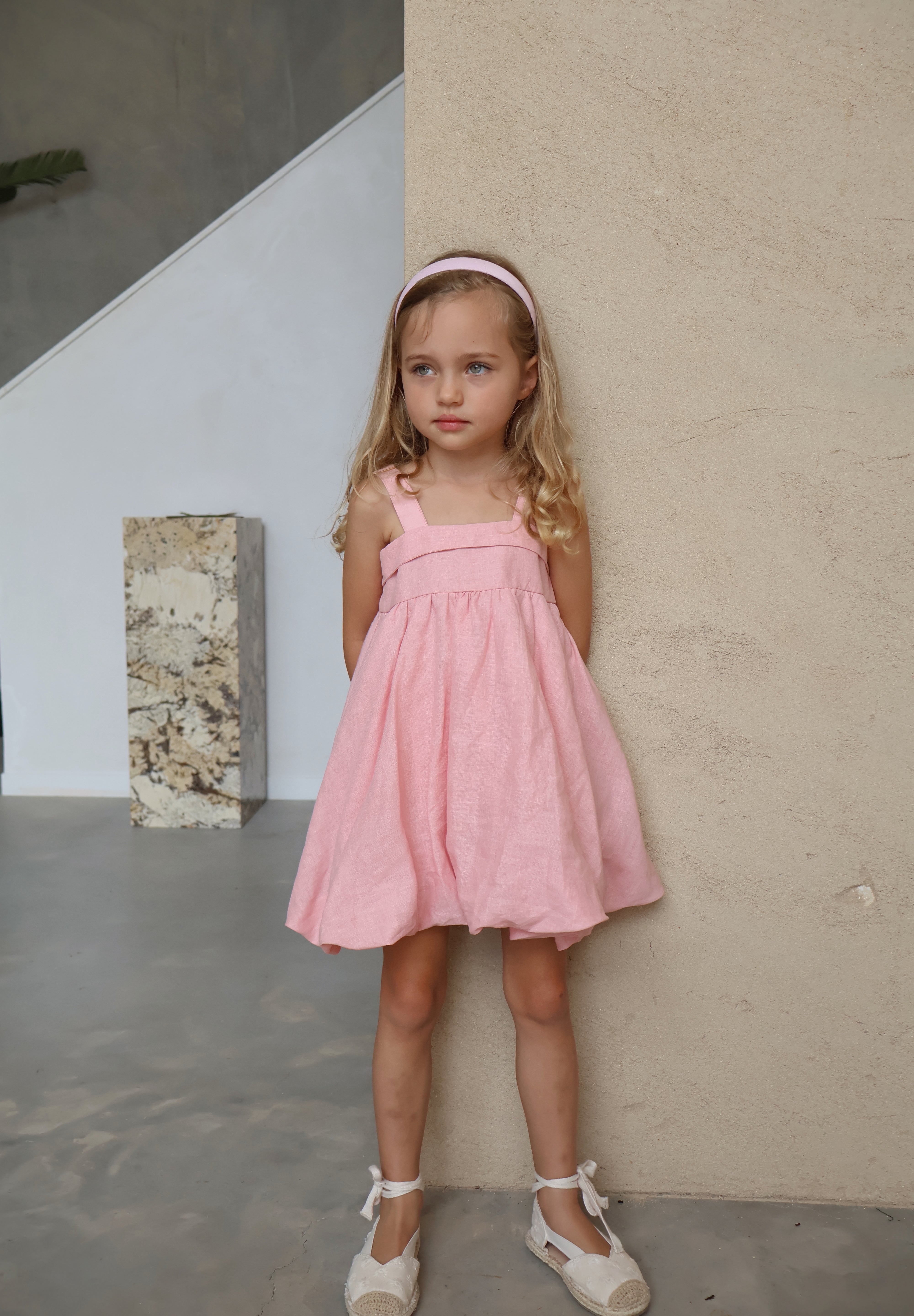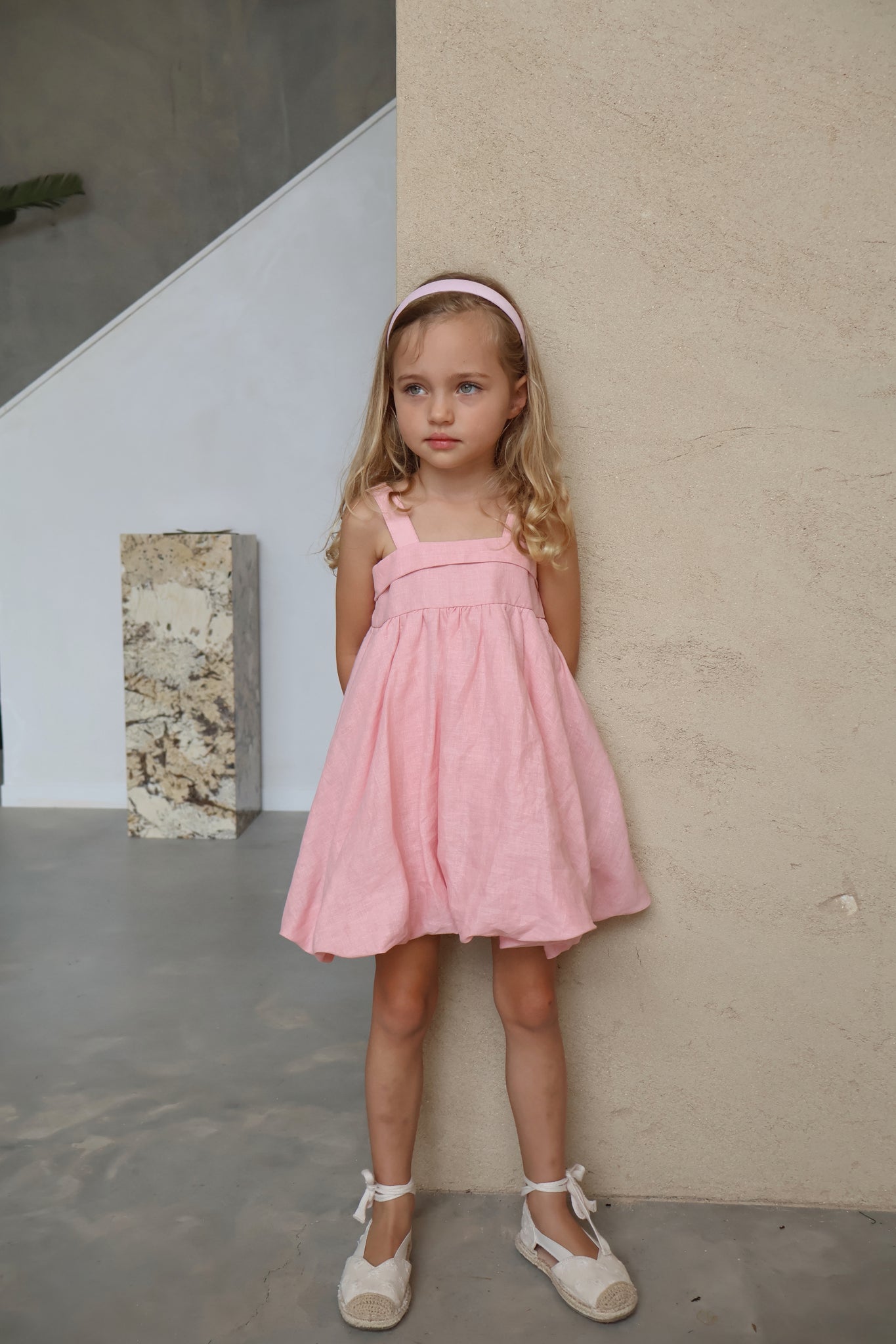 Our gorgeous rose baby doll dress is made from 100% soft linen in a beautiful rosey blush colour. Showcasing a mini bubble skirt, fixed waist and cut out detailing at the back with a gorgeous tie up bow. Its both dainty and elegant in its design. This dress is perfect for every occasion and features high quality gold coloured hardware which makes the straps adjustable to compliment longevity of wear.