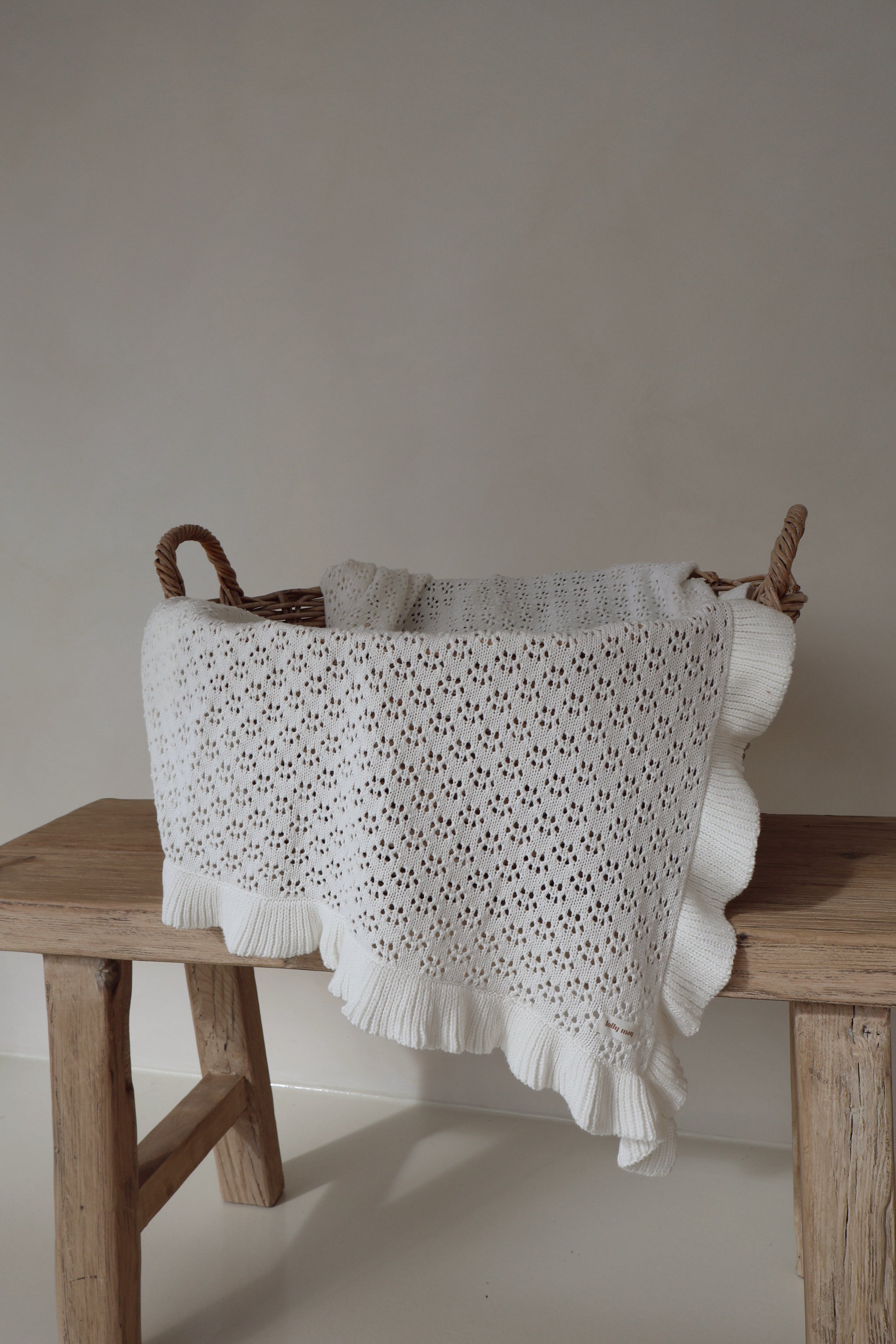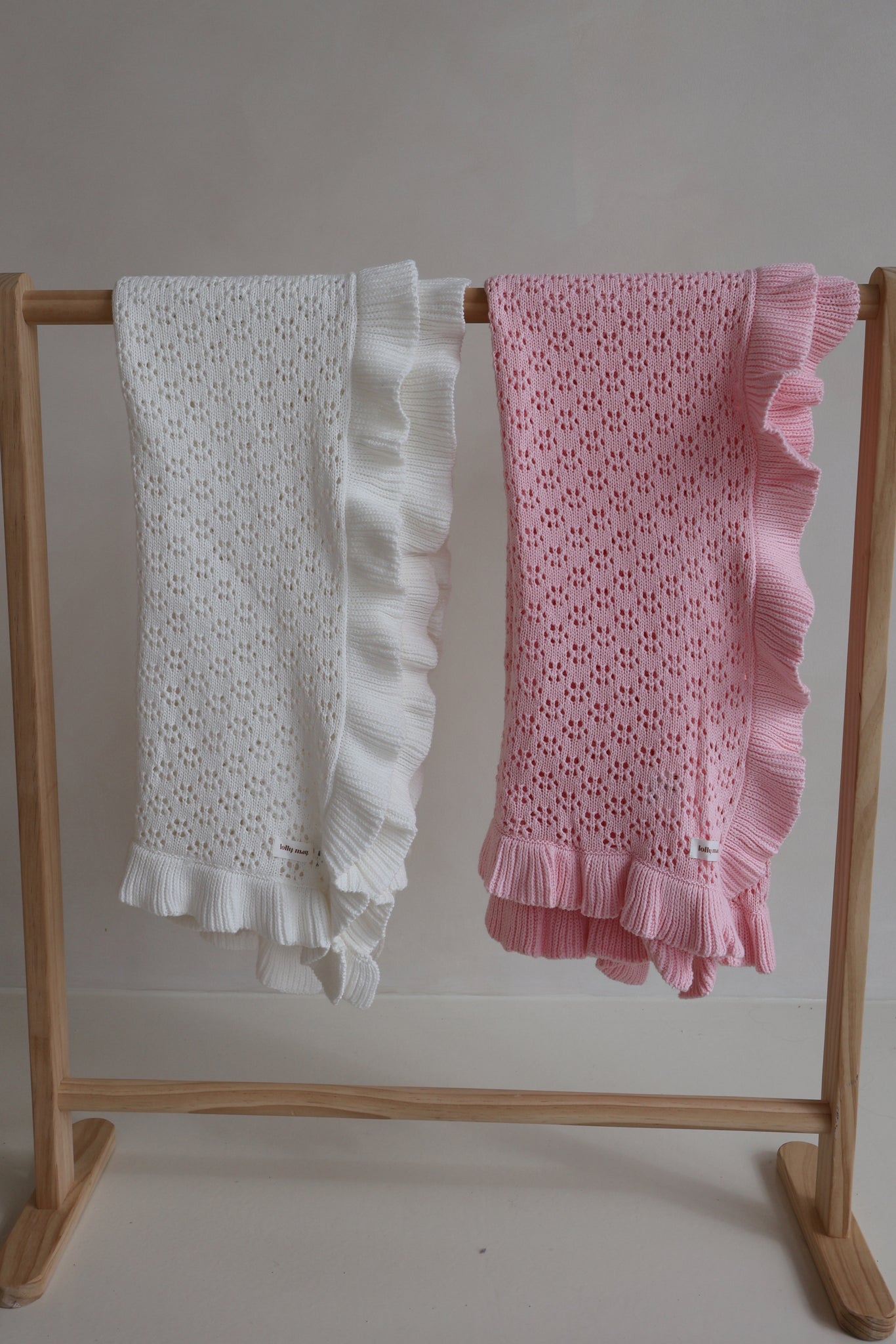 The Heirloom Crochet Knit Frill Blanket- A Lolly May keepsake from the very beginning. Generous in size 90x90cm