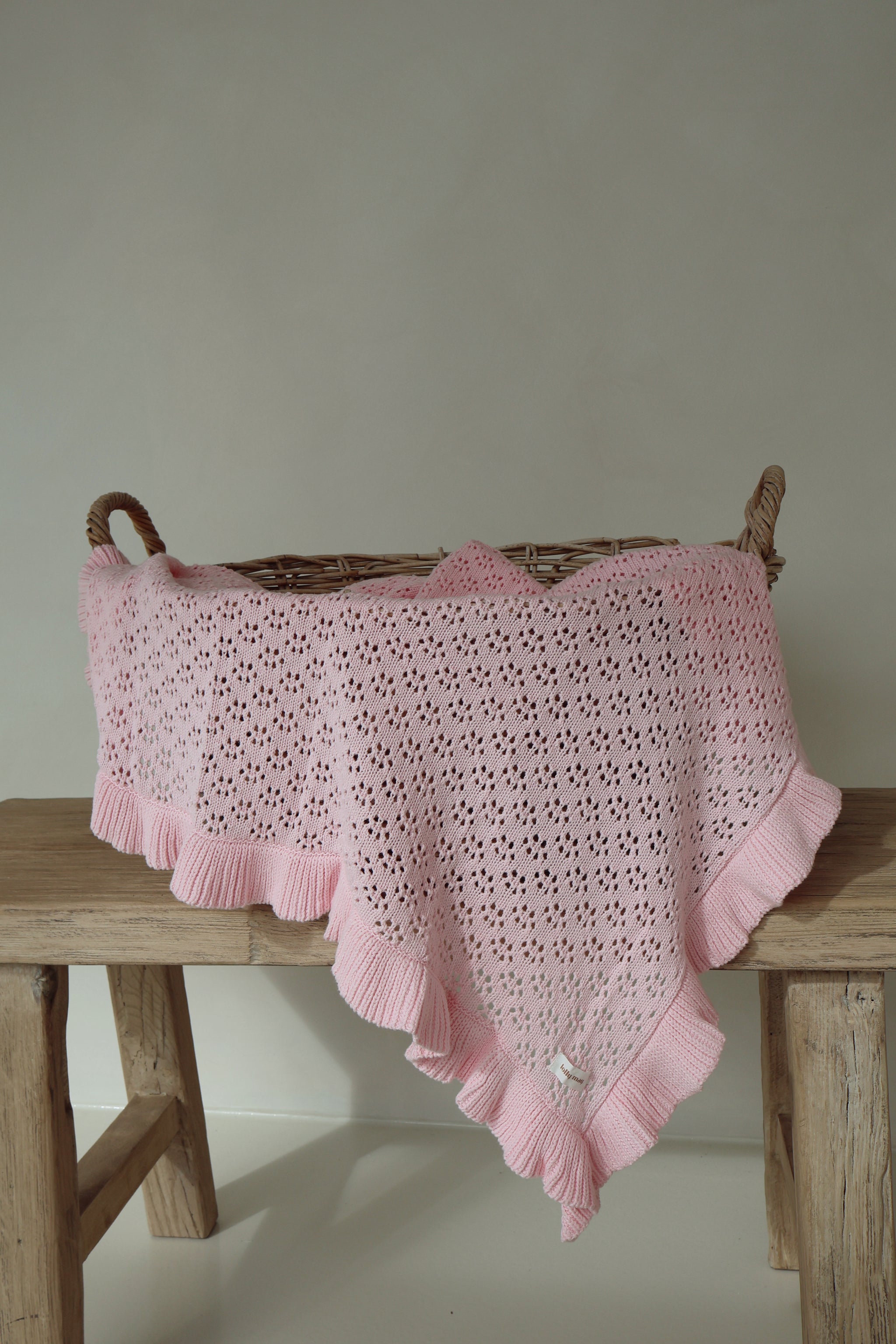 Soft, timeless, and thoughtfully crafted, our signature frill blanket is made from 100% cotton in our delicate crochet flower knit. Finished with a beautifully detailed frill edging, it's available in two beautiful shades: Ballet and Cloud.